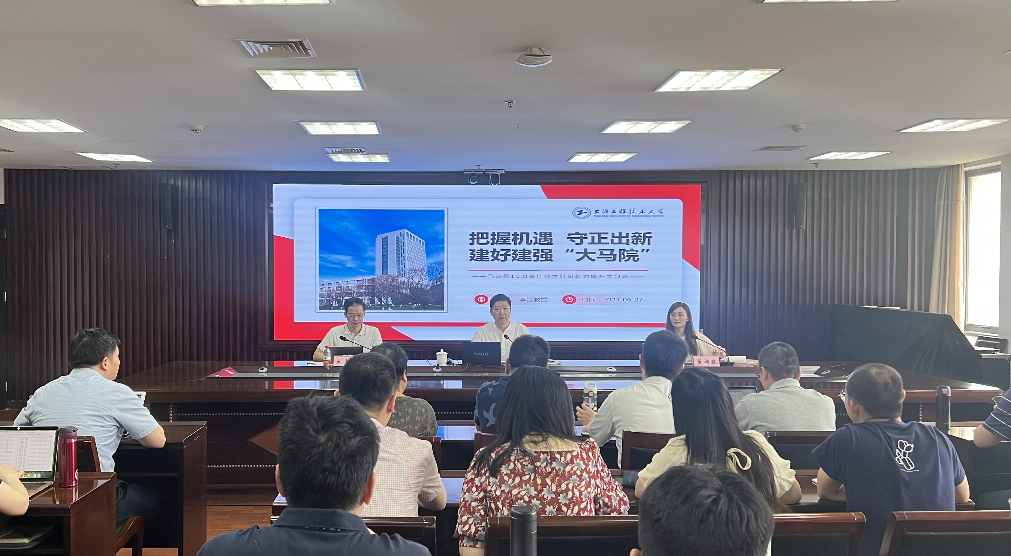 为深入开展学习贯彻习近平新时代中国特色社会主义思想主题教育,全面贯彻党的教育方针,落实立德树人根本任务,进一步提升教师教学科研水平。6月27日上午,马克思主义学院第十五期暑期教学科研能力提升学习班正式开班。校党委书记李江出席开班仪式并作主题报告,马克思主义学院党政班子成员、全体教师参加。开班仪式由党总支书记董旖旎主持。