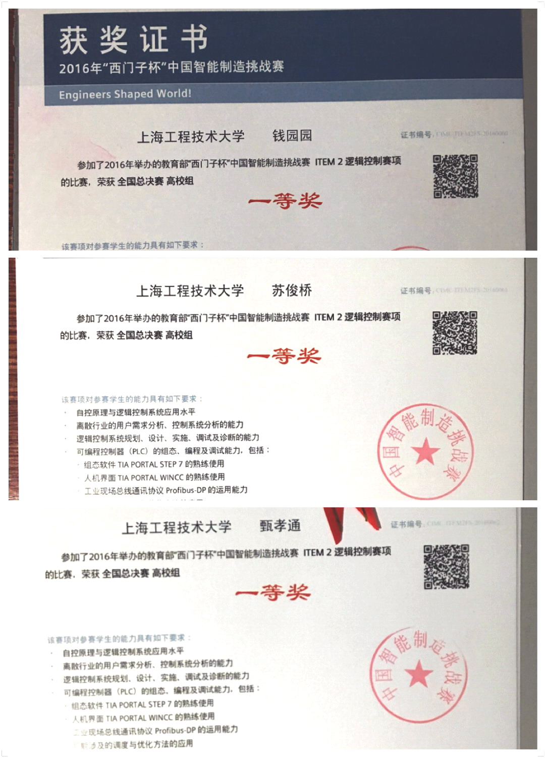 8月17日至21日,2016年“西门子杯”中国智能制造挑战赛全国总决赛在湖北宜昌三峡大学举行,来自北京交通大学、同济大学、上海交通大学等100所高校的301支队伍参加了总决赛,我校最终获三项一等奖,两项二等奖,同时我校还获得华东赛区一等奖1项、二等奖7项、三等奖6项,获奖总数创新高。