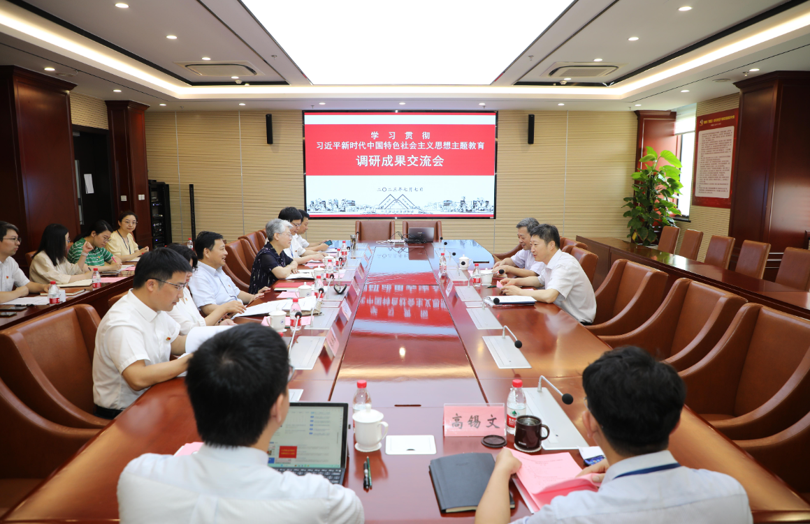 校党委副书记、副校长朱晓青受校党委副书记、校长、学校主题教育领导小组副组长俞涛委托,围绕“应用型高校发展规律研究”调研主题,聚焦调研中发现的应用型大学产业型、学科型学院学科发展的困境以及应用型大学在产教深度融合推进科技成果转化方面的困难,提出“探索建立学术共同体,进行学部制改革”“做实产教融合人才培养共同体,完善科技成果转化政策体系”等两大方面对策,并介绍了主题教育期间已采取的具体措施和取得的成效。