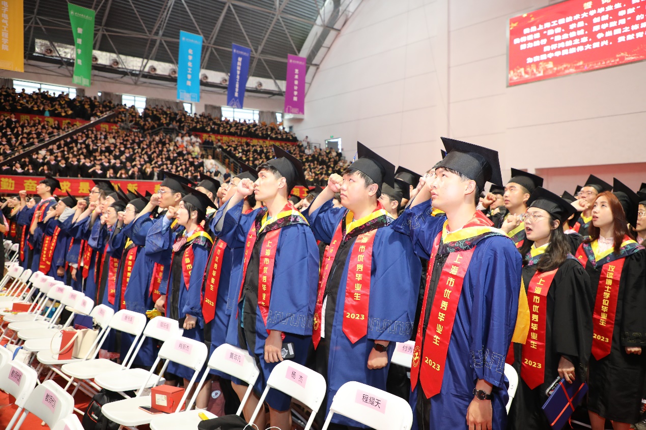全体参会毕业生向母校郑重宣誓,将在今后的人生旅途中,时刻谨记“勤奋、求是、创新、奉献”的校训精神,努力践行“勤业惟诚、厚学致用”的价值取向,始终胸怀鸿鹄之志,努力争当国之栋梁,为实现中华民族伟大复兴,贡献青春力量。