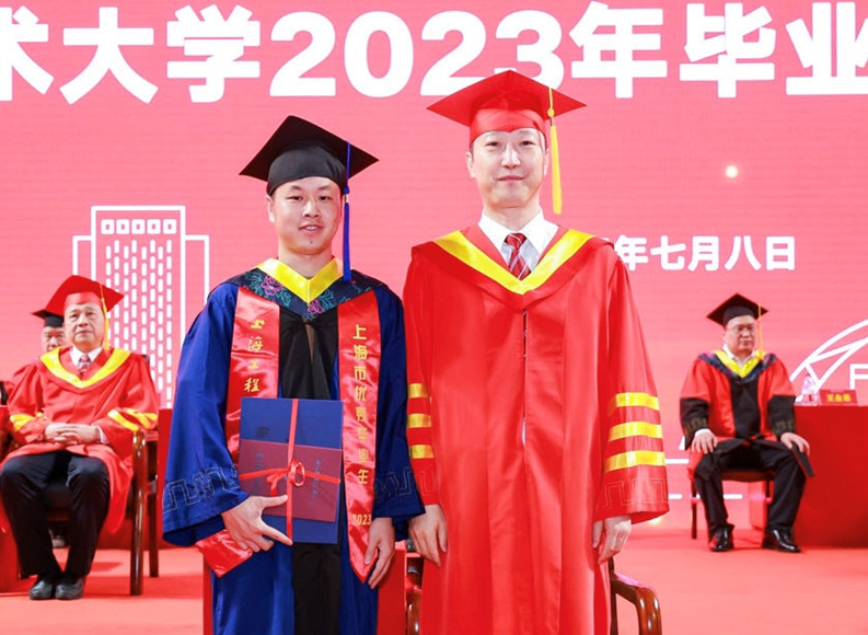 校党委副书记、工会主席史健勇宣读了荣获“上海市优秀毕业生”荣誉称号的毕业生名单,并为他们颁发了荣誉证书。