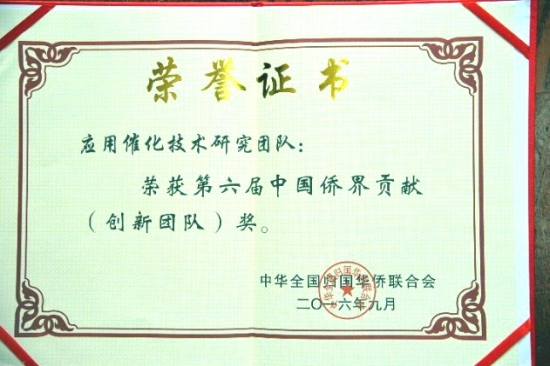 日前举行的中国侨联第六届新侨创新创业成果交流暨联盟成立大会上,我校门勇教授应用催化技术研究团队荣获中国侨界贡献奖(创新团队)。