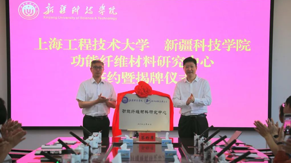 在新疆科技学院调研期间,李江书记一行看望学校援疆老师唐春峰。座谈期间,我校与新疆科技学院“功能纤维材料研究中心”揭牌;我校纺织服装学院和新疆科技学院化工与纺织工程学院签订“功能纤维材料研发中心共建合作协议”;我校电子电气工程学院和新疆科技学院信息科学与工程学院签订“IClass远程教学平台软件合作协议”;王国中教授将IClass远程教学平台软件授权给新疆科技学院信息科学与工程学院。