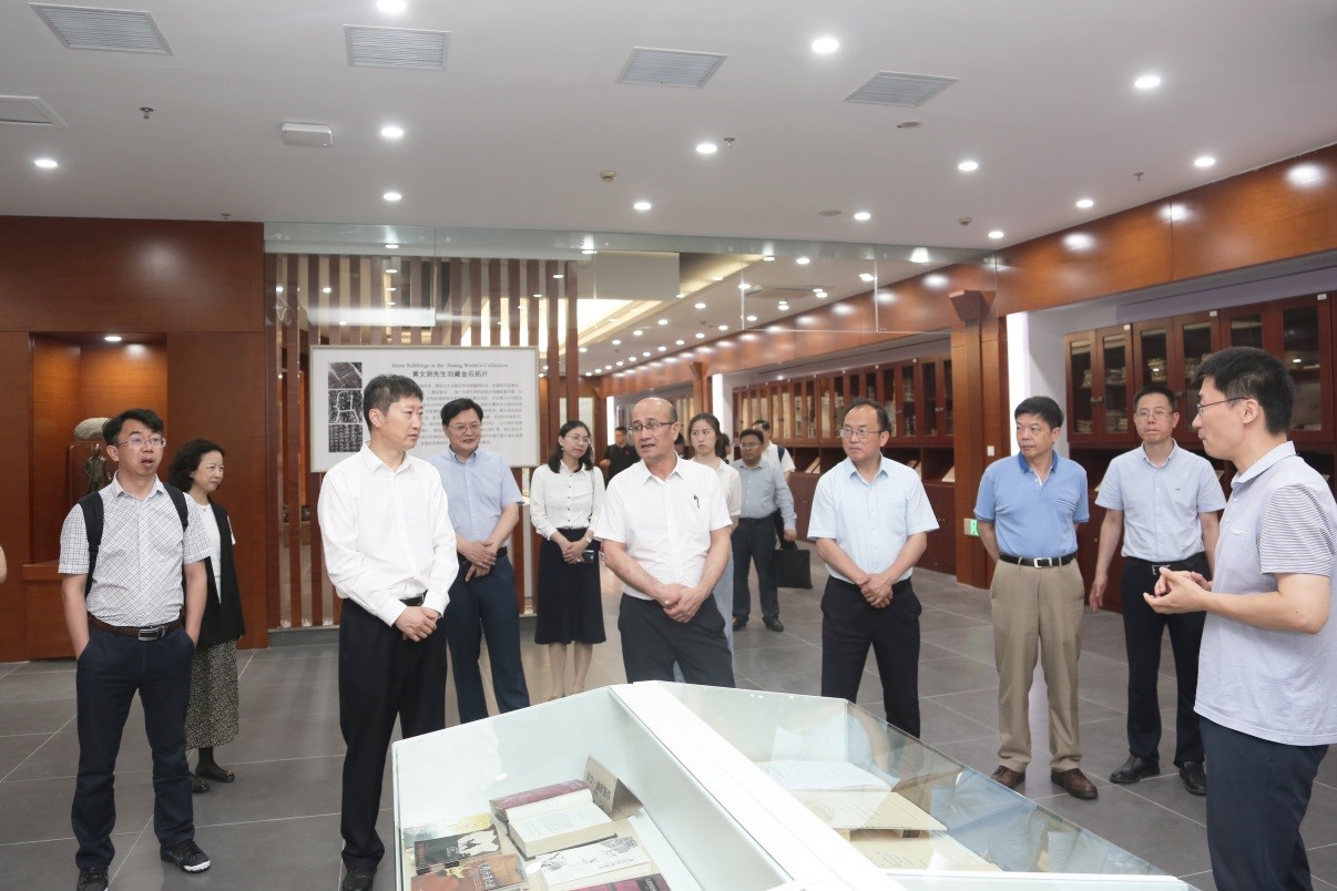 在新疆师范大学调研期间,新疆师范大学党委副书记、校长吾满江·艾力,校党委副书记刘俊,校党委常委、副校长陈彤陪同并座谈。会后,李江书记一行还参观了新疆师范大学黄文弼特藏馆。