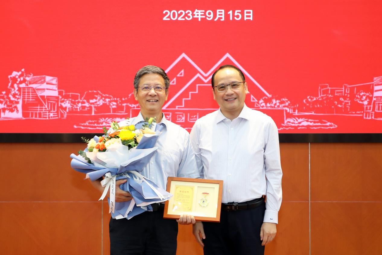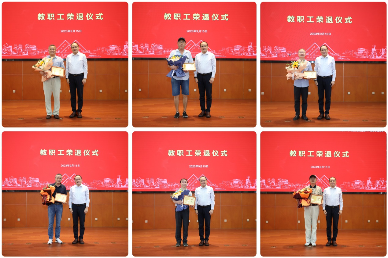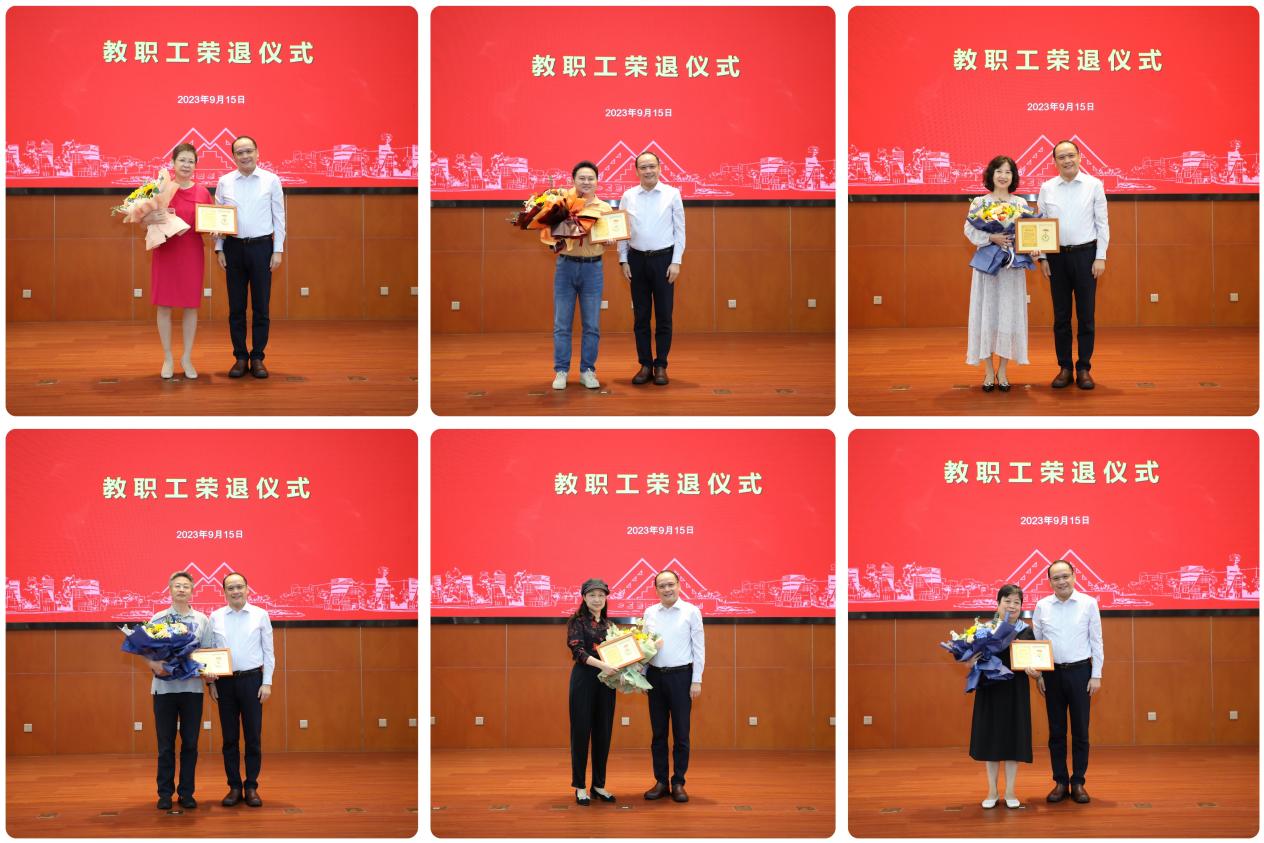 会上举行了教职员工荣退仪式。俞涛校长向荣退教职员工代表颁发荣退纪念奖章和鲜花,并一一合影留念。立德树人数十载,韶华不负程园情。整个仪式隆重而热烈,会场内掌声迭起,俞校长代表全体教职员工向退休老同志们献上最诚挚的祝福。