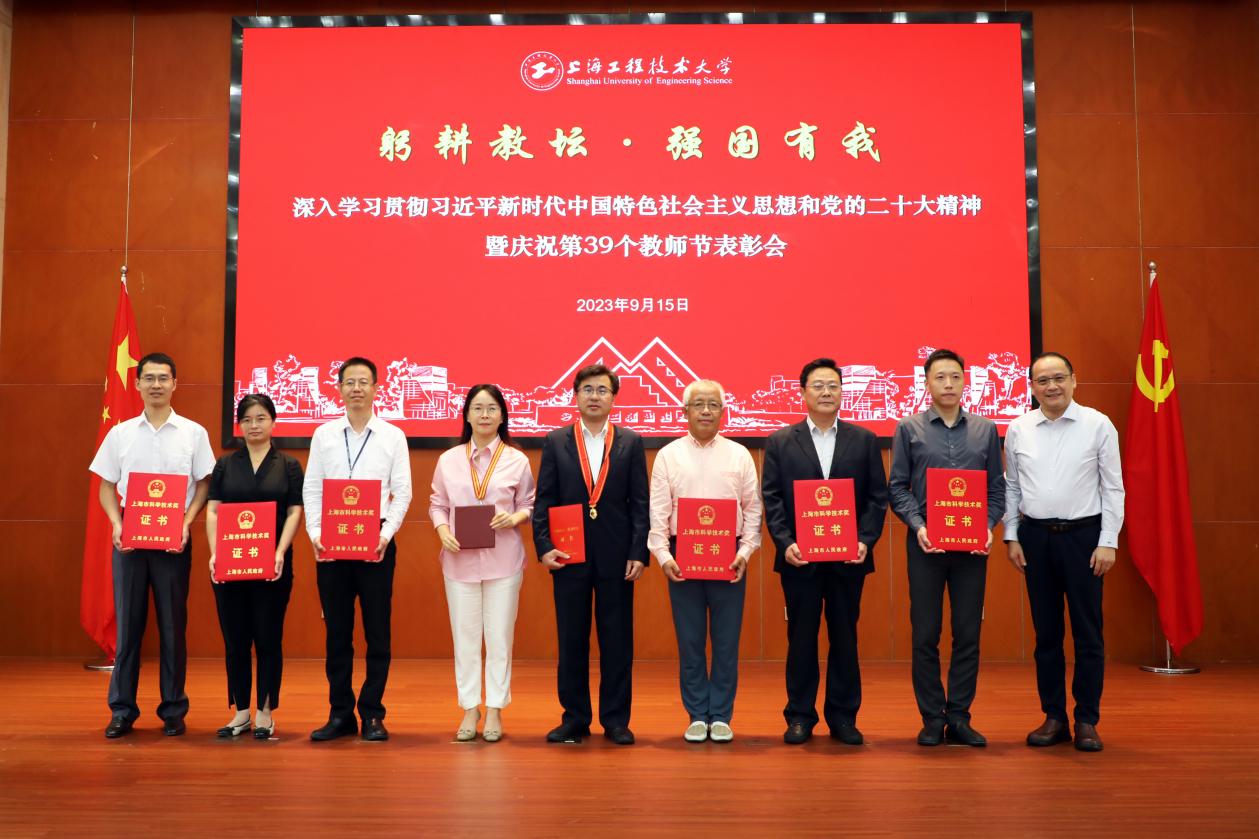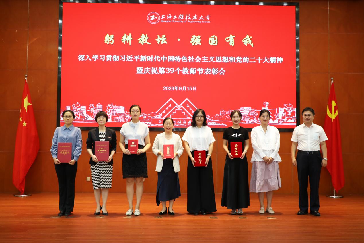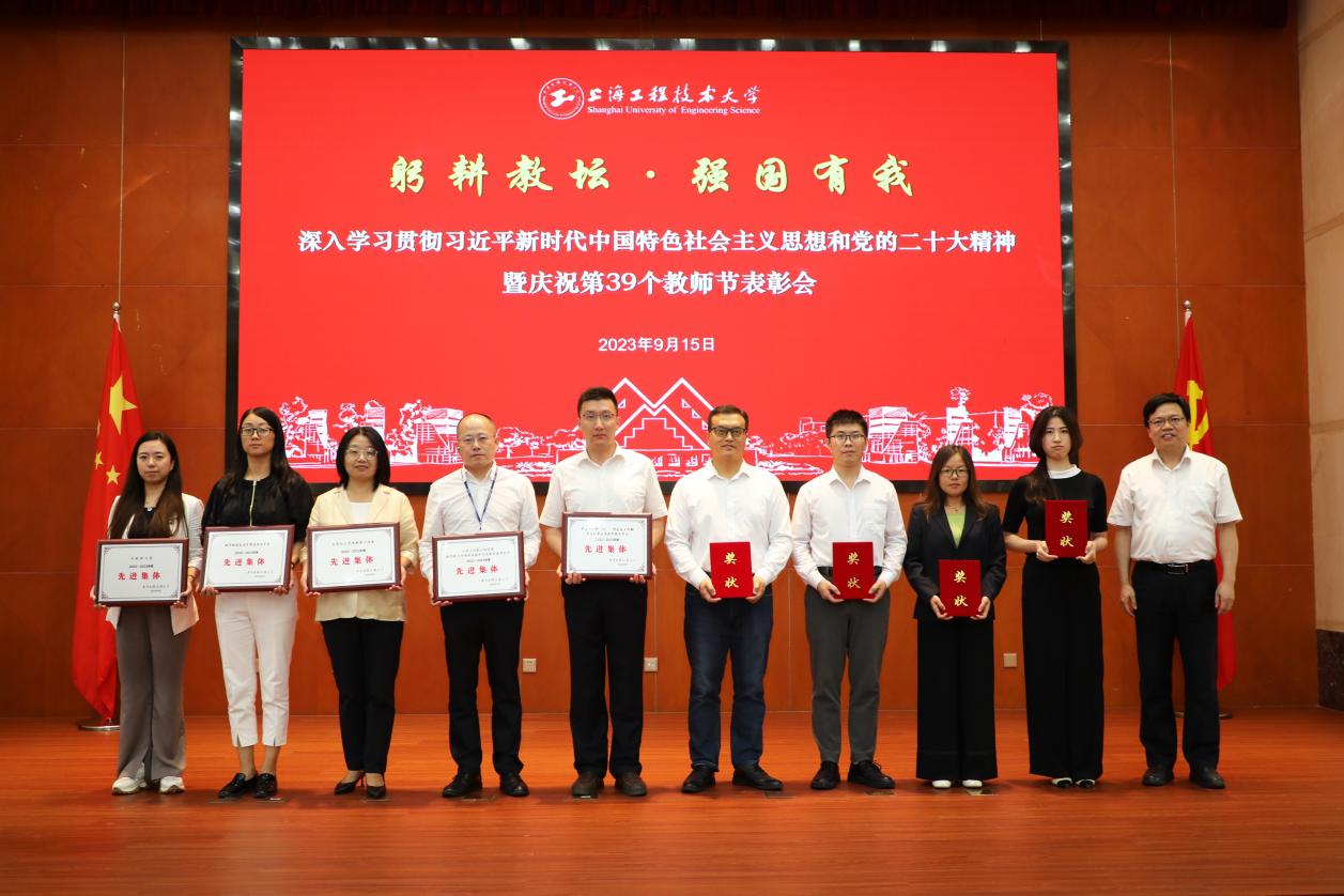 王岩松副校长宣读表彰决定并为第五届高等学校青年教师电工学课程教学竞赛、第五届上海高校青年教师教学竞赛、第十五届全国商科教育实践教学大赛、第三届上海市教师教学创新大赛获奖代表颁奖。