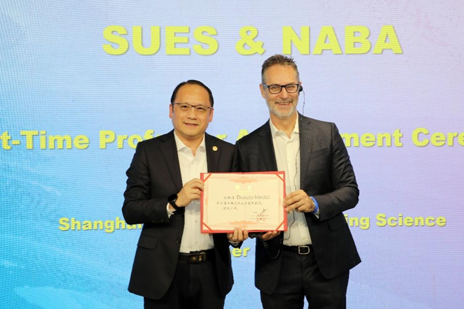 俞涛校长为Donato Medici先生颁发了兼职教授聘书,希望他能继续作为两校教育合作的桥梁,不断为我们开拓国际视野和教育资源,为学生的学业发展和个人成长带来更多的机遇与启发。