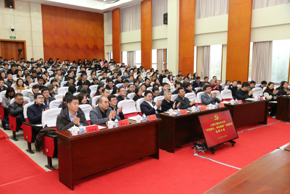 市委第七巡回指导组成员彭海涛、王树生、万世东,全体校领导、全体中层干部、离退休老同志代表、教授党员代表、全体党支部书记、教师党员代表和学生党员代表等300余人参加了总结大会。