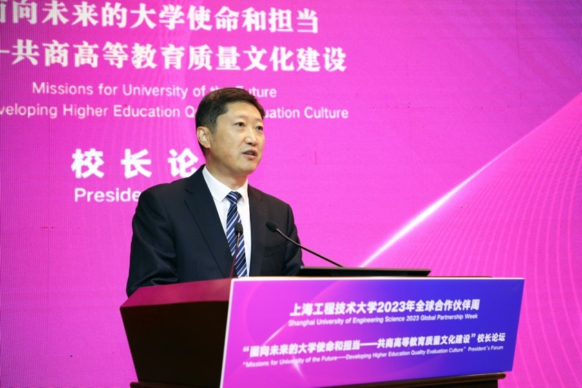 俞涛校长以“高质量应用型人才培养模式探索及应用型大学的未来发展”为题,从上海工程技术大学的定位、愿景、使命及特色出发,与在座师生分享我校对高质量应用型人才培养模式的探索。他指出,大学的领导者,尤其是校长,需要将象牙塔建成学生追求知识的殿堂和精神的家园,人才培养需要“筑牢主体、打开窗户、敞开大门”,要以学生为中心,建立完备的质量保障体系和全球文化交流体系,培养学生扎实的专业素养和国际视野、关注学生的全面发展。他表示,我校期待与更多的合作伙伴增进互信合作,彼此赋能,为服务全球教育治理、推动人类文明发展做出应有的贡献。