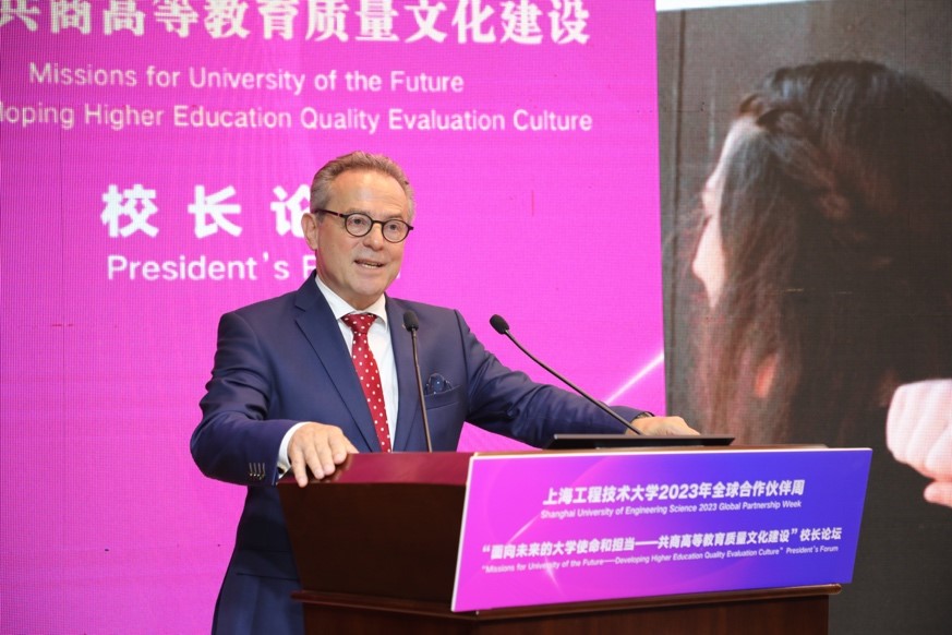 基于“面向未来的大学使命和担当——共商高等教育质量文化建设”这一主题,中国上海工程技术大学校长俞涛、瑞士格劳宾登应用科学大学校长Jürg Kessler、俄罗斯圣彼得堡国立航空航天大学副校长Matiash Valerii、泰国宋卡王子大学普吉分校副校长Pun Thongchumnum、德国北豪森大学预科学校校长Lutz Herfurth等五位来自不同文化背景和教育模式的高校校长作主旨报告,分享讨论了在技术快速革新和充满机遇与挑战的时代下,大学如何打造全球化的高等教育质量文化体系,更好实现新时代大学的使命。