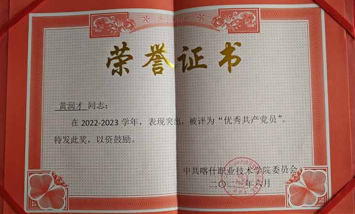 作为中组部系列上海市第十一批教育援疆的成员之一,电子电气工程学院黄润才老师在喀什地区莎车县已经工作了半年多,参与援建喀什理工职业技术学院电子信息系,担任系部负责人,同时还兼任了援疆教师工作队副队长、临时党支部副书记等职务。半年来,黄老师作为一名老党员、老教师,一直以饱满的工作热情,积极地投入到各项筹建工作之中,得到了受援单位的充分肯定,荣获喀什职业技术学院颁发的“优秀党员”光荣称号。