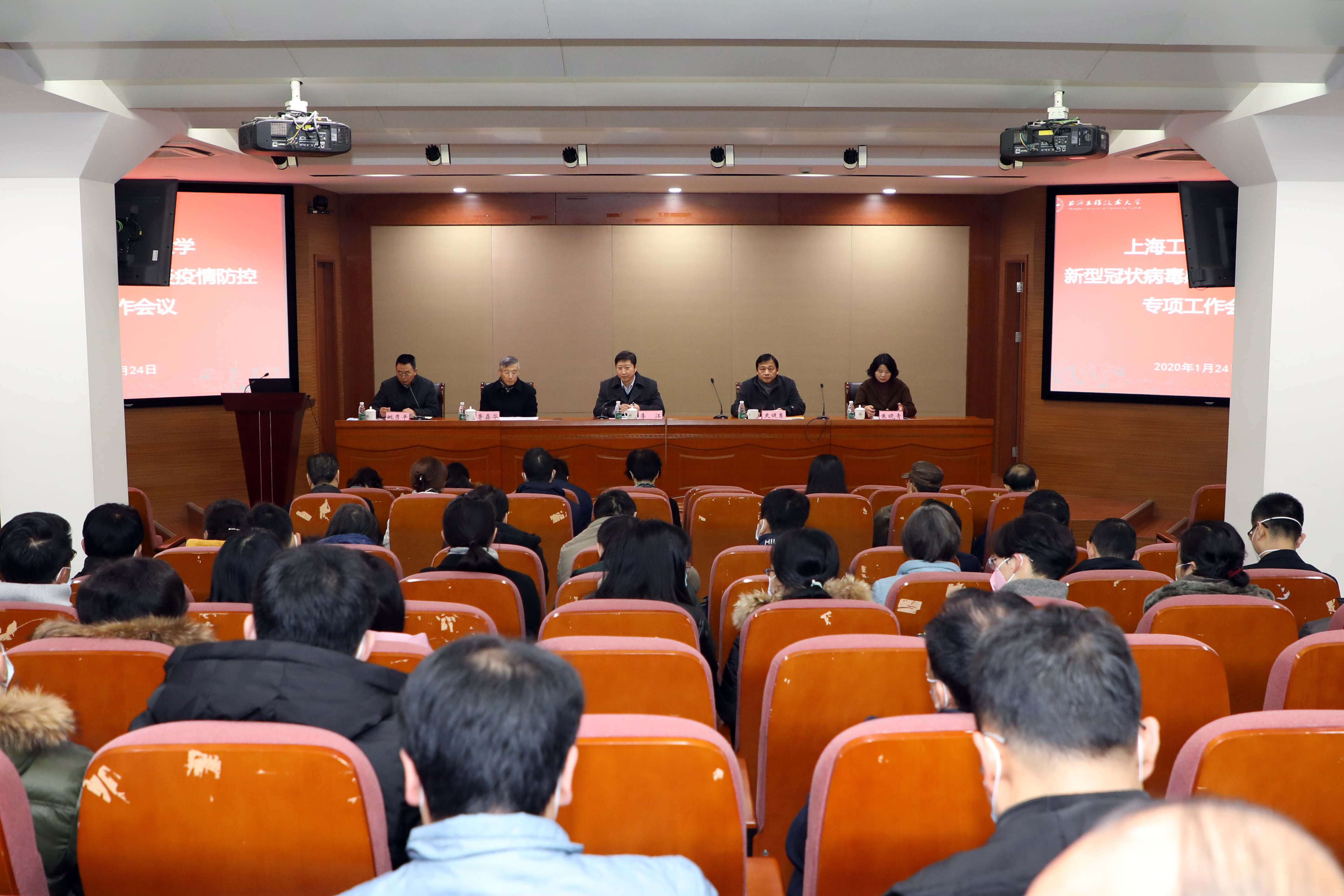 继1月23日学校召开会议启动新型冠状病毒感染肺炎疫情防控工作之后,24日,学校党委书记李江又主持召开了新型冠状病毒感染肺炎疫情防控专题会议,全面动员部署新型冠状病毒感染的肺炎疫情防控工作,要求全校要坚决贯彻习近平总书记重要指示和李克强总理批示精神,切实增强疫情防控的责任感和紧迫感,把全校师生的生命安全和身心健康置于首位,全力以赴采取有力有效措施,积极做好学校疫情防控工作。副校长姚秀平传达了上级会议精神和有关文件要求,党委办公室主任高锡文布置了具体防控任务。党委书记李江,党委副书记、工会主席史健勇,党委副书记、纪委书记鲁嘉华,党委副书记、副校长朱晓青,副校长姚秀平等校领导出席会议,在沪全体中层干部参加了会议。