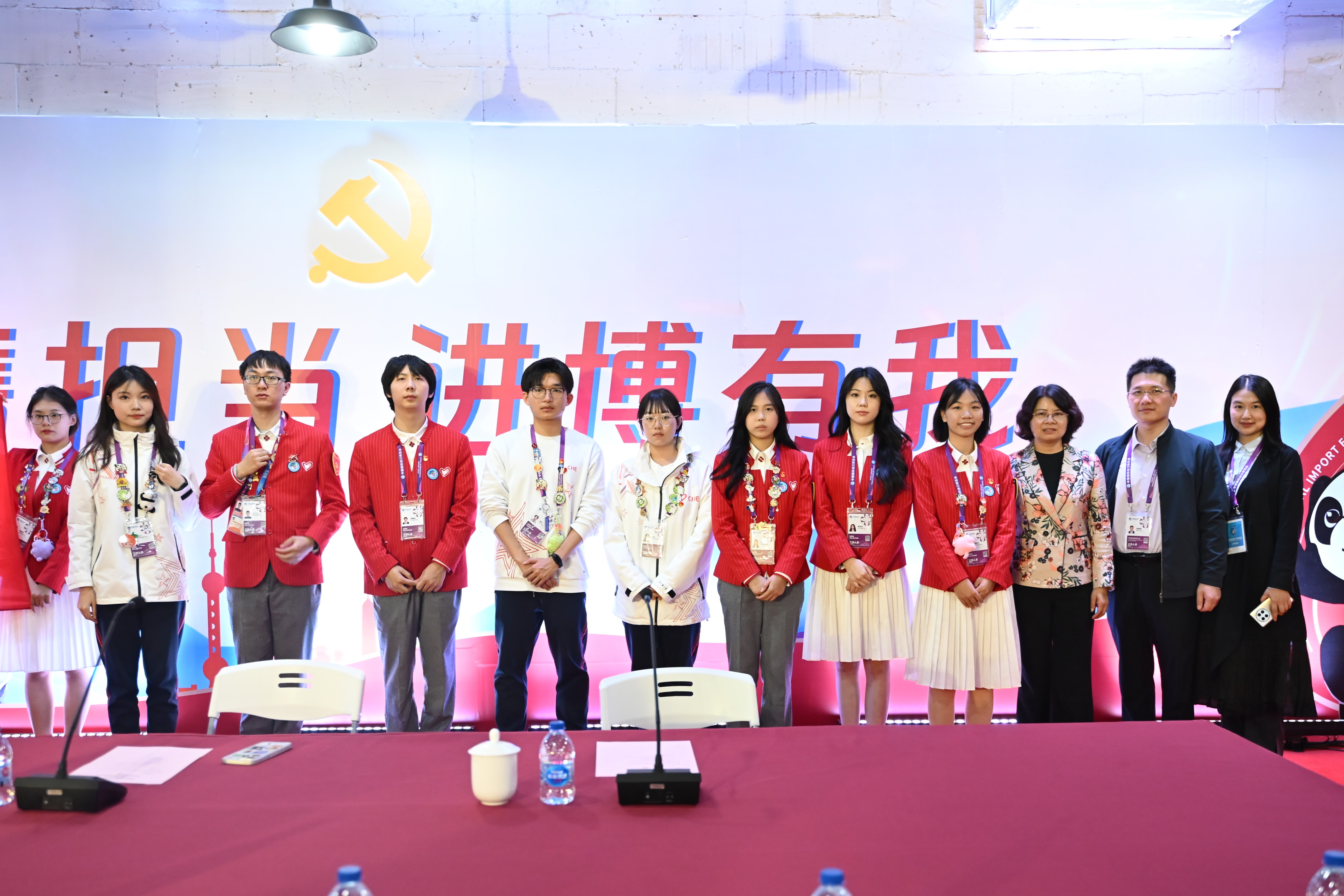 会上,10名在11月份新发展的小叶子党员进行了入党宣誓仪式,朱晓青副书记、副校长为他们佩戴党员徽章,并对学校第六届进博会志愿者临时党支部发挥党支部的战斗堡垒作用和党员志愿者立足岗位的先锋模范作用提出工作要求,让党旗、团旗飘扬在进博会志愿服务一线,向各国来访嘉宾展示中国青年一代党团员在服务国家主场外交和重大活动中的冲锋带头作用。