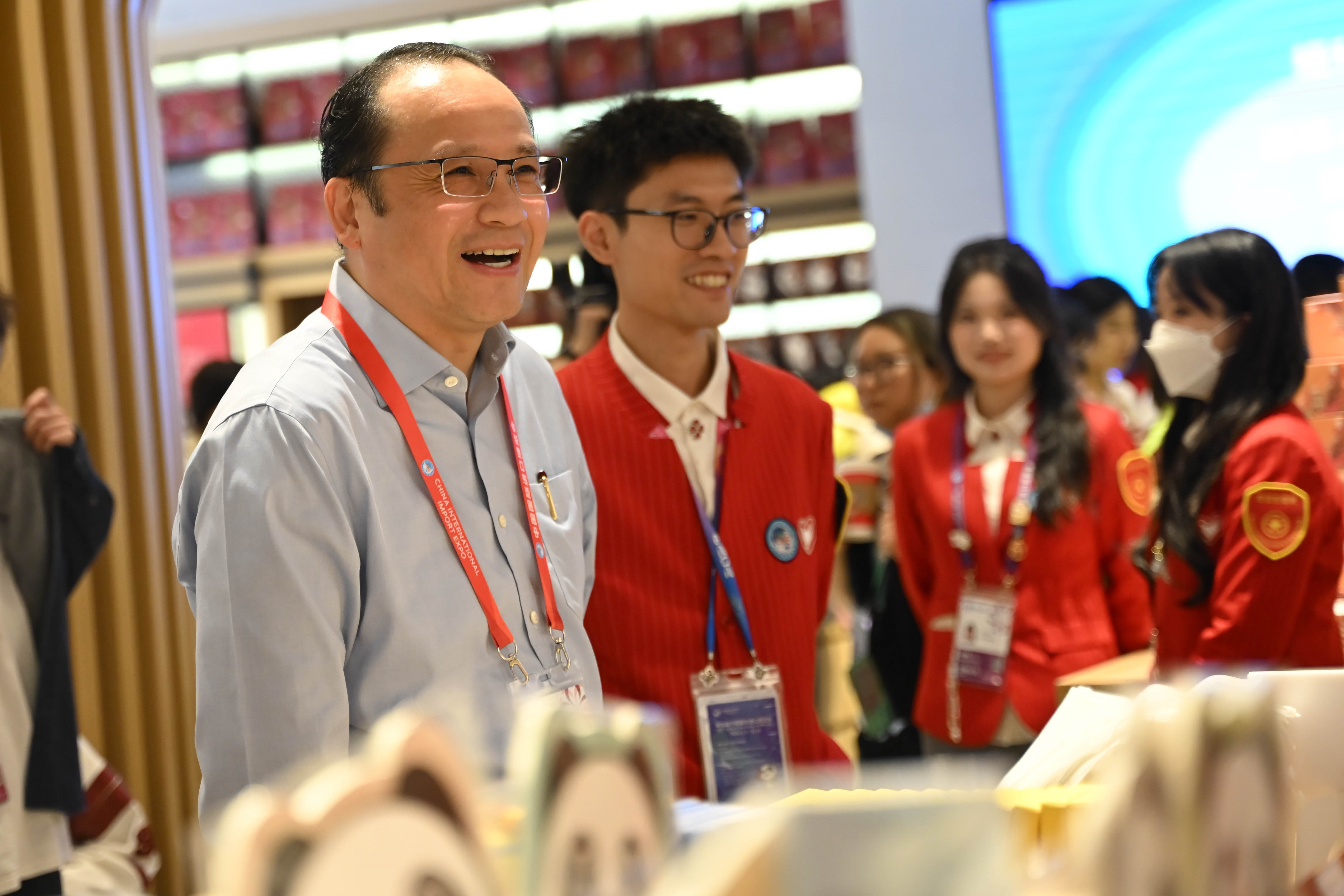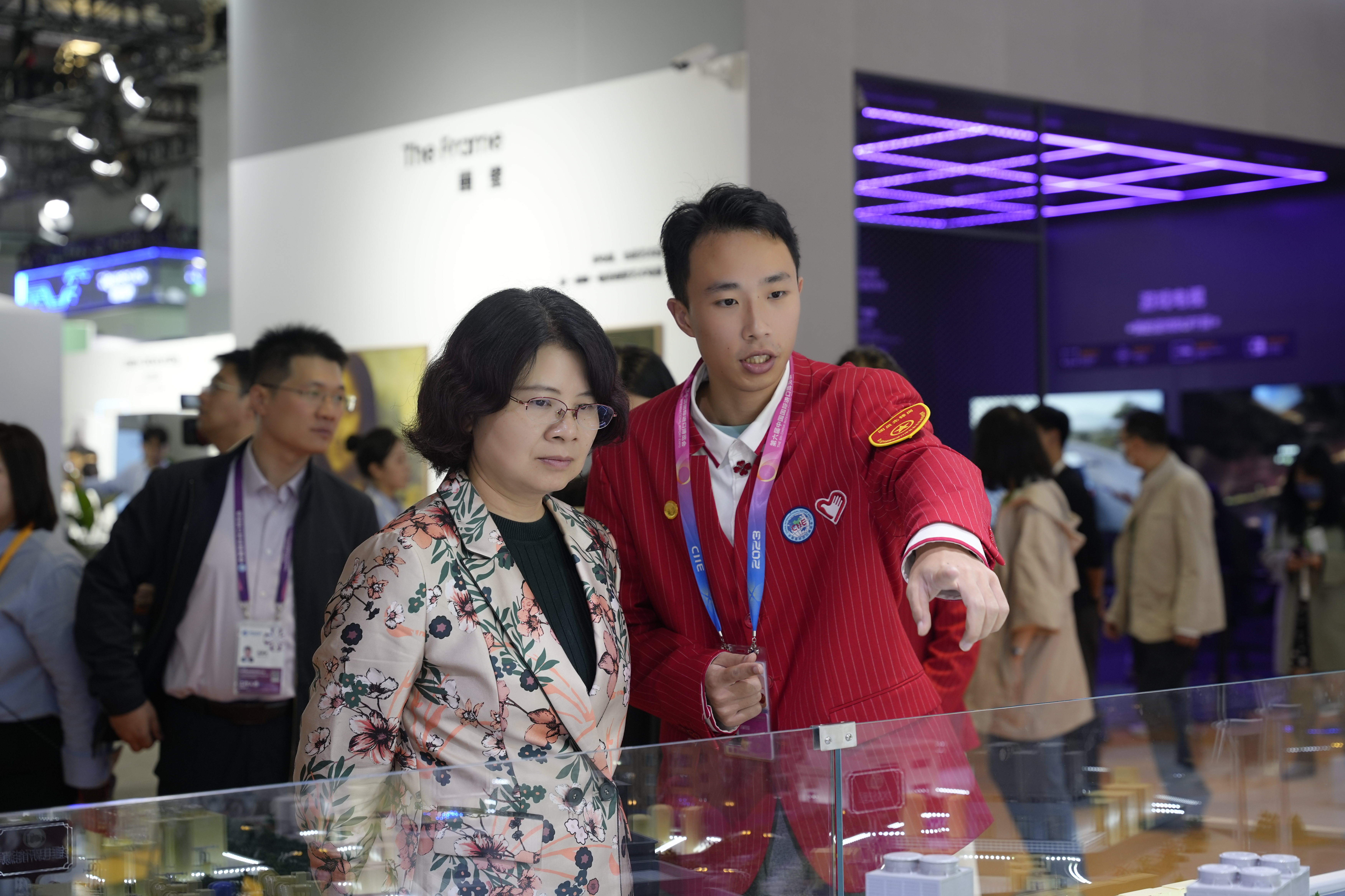 11月8日,校长俞涛,校党委副书记、副校长朱晓青在团市委副书记王江的陪同下,慰问了奋斗在国展文创馆、观展团、技术装备展区等岗位上的“小叶子”们,校领导与志愿者们亲切交流并关心询问“小叶子”们的上岗情况。在对话中,“小叶子”纷纷表示,能在大学期间参加进博会令他们倍感荣耀,工程大“小叶子”不怕苦、能吃苦,愿奉献,共拼搏。校领导一行对“小叶子”为第六届进博会顺利召开提供的服务保障表示充分肯定并感谢同学们的辛勤付出,校长办公室主任王佳杰、团委书记陈翼然、团委副书记徐靓雯等陪同慰问。