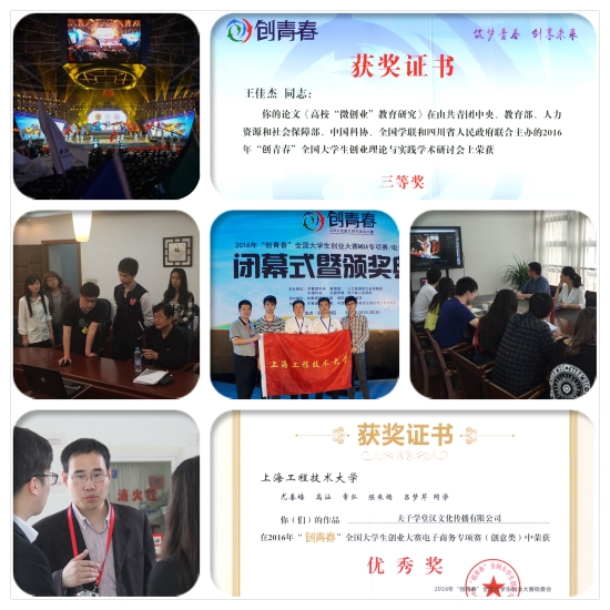 在刚刚落幕的2016年“创青春”全国大学生创业大赛中,团委推荐、陈翼然老师指导的“夫子学堂汉文化传播有限公司”创业团队荣获创业计划竞赛铜奖、电子商务专项赛优秀奖,科技园推荐、宋勤健老师指导的“乐乙企业行政采购平台”创业团队荣获创业实践挑战赛铜奖、电子商务专项赛优秀奖,团委王佳杰老师《高校“微创业”教育研究》一文荣获2016全国大学生创业理论与实践学术研讨会三等奖。
