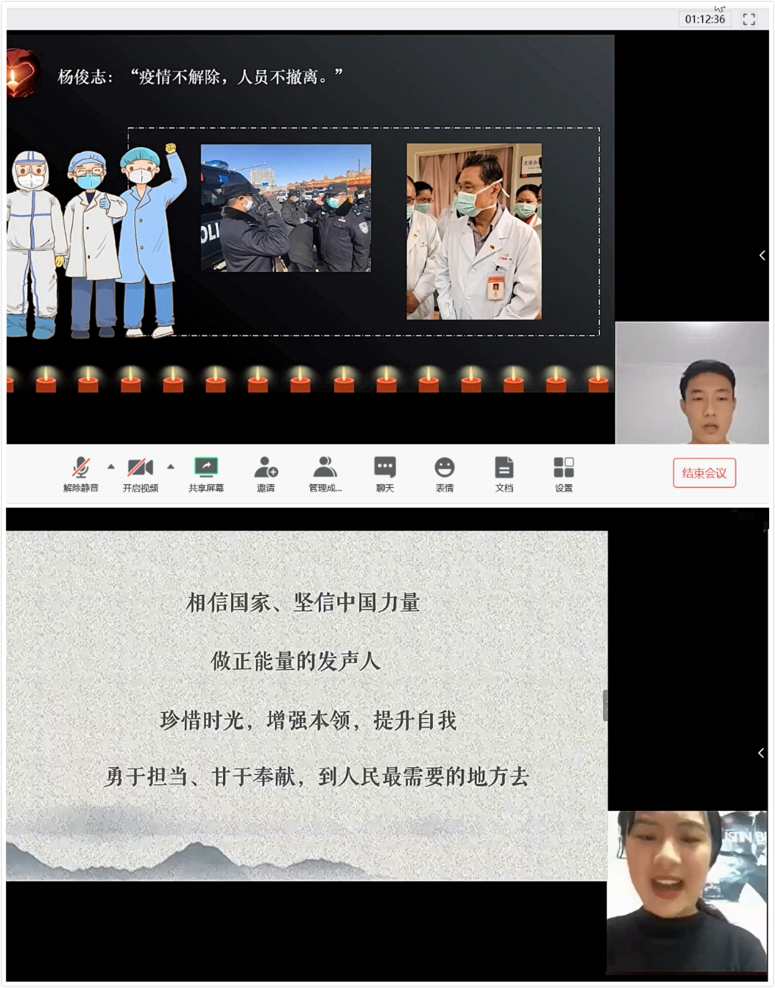 悼念活动在师生们致敬和祈福的希冀中告一段落,但对于英烈奋不顾身、坚守一线的敬仰不会停止。此次悼念活动是一次深刻的思想政治教育,不仅强化了师生对于民族精神的认同,更加激发了大家爱党爱国的热情,坚定了“四个自信”,为夺取疫情防控阻击战的全面胜利树立了坚实的信心。