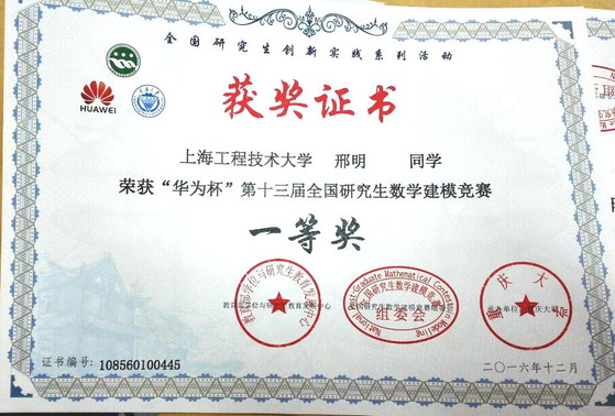 近日在重庆举行的全国第十三届研究生数学建模竞赛颁奖典礼上传来喜讯,我校研究生获得一等奖2项、二等奖20项、三等奖30项,成功参赛奖101项,在参赛的全国500多家研究生培养单位中,总成绩高居全国前十位。同时,我校凭借出色的成绩和组织工作,被教育部学位与研究生教育发展中心、全国研究生数学建模竞赛组织委员会授予优秀组织奖。全国研究生数学建模竞赛由教育部学位与研究生教育发展中心主办,被列为教育部“研究生教育创新计划”项目之一、教育部“全国研究生创新实践系列活动”主题赛事之一。