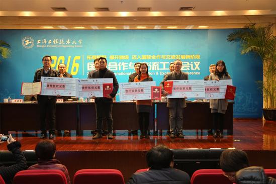 会议表彰了2016年学校国际合作与交流工作优秀学院及个人,全体校领导为获奖的优秀学院及优秀个人颁发了荣誉证书。