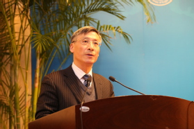 副校长鲁嘉华在大会上作了“拓展视野,提升能级,迈入国际合作与交流法新阶段”——学校国际合作与交流工作报告。工作报告用具体的数据阐述了近年来学校国际化水平的稳步提升和完整的国际合作与交流发展结构体系;分析了当前我校面临的国家及上海市新时期教育对外开放的新形势和挑战,并提出了“十三五”期间的发展目标和举措,希望各部门,学院(部、中心)转变观念、加强规划、清除障碍,创新管理,树立国际化发展思维,进一步拓展视野,提升能级,积极迈入国际交流与合作发展新阶段。