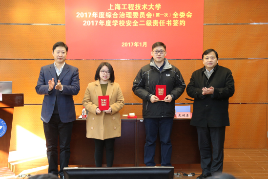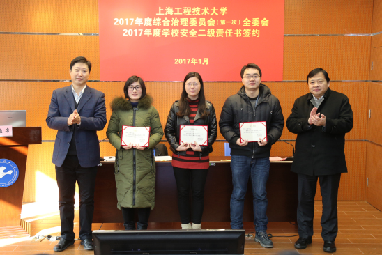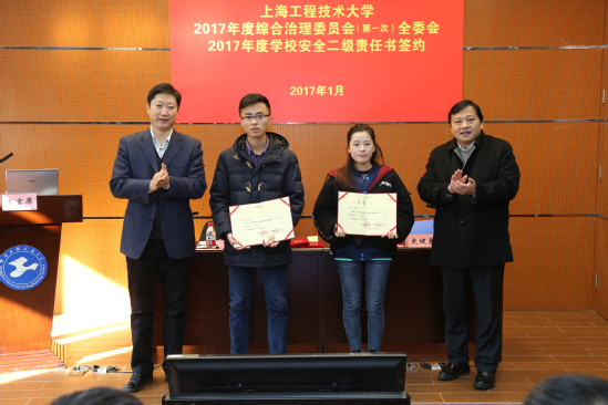 会议还举行了2017年度综合治理责任书签约仪式,表彰了校园年度拾金不昧先进个人、首届大学生安全知识竞赛优秀组织奖等先进个人和集体。