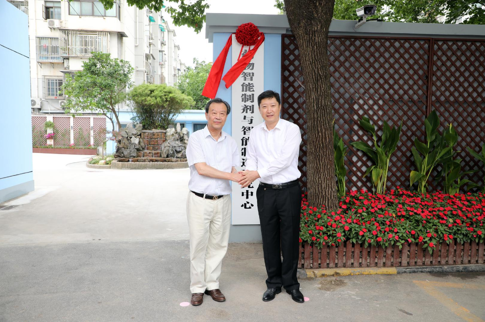 李江书记和侯惠民院士在药物智能制剂与智能制造研究中心现场线下揭幕