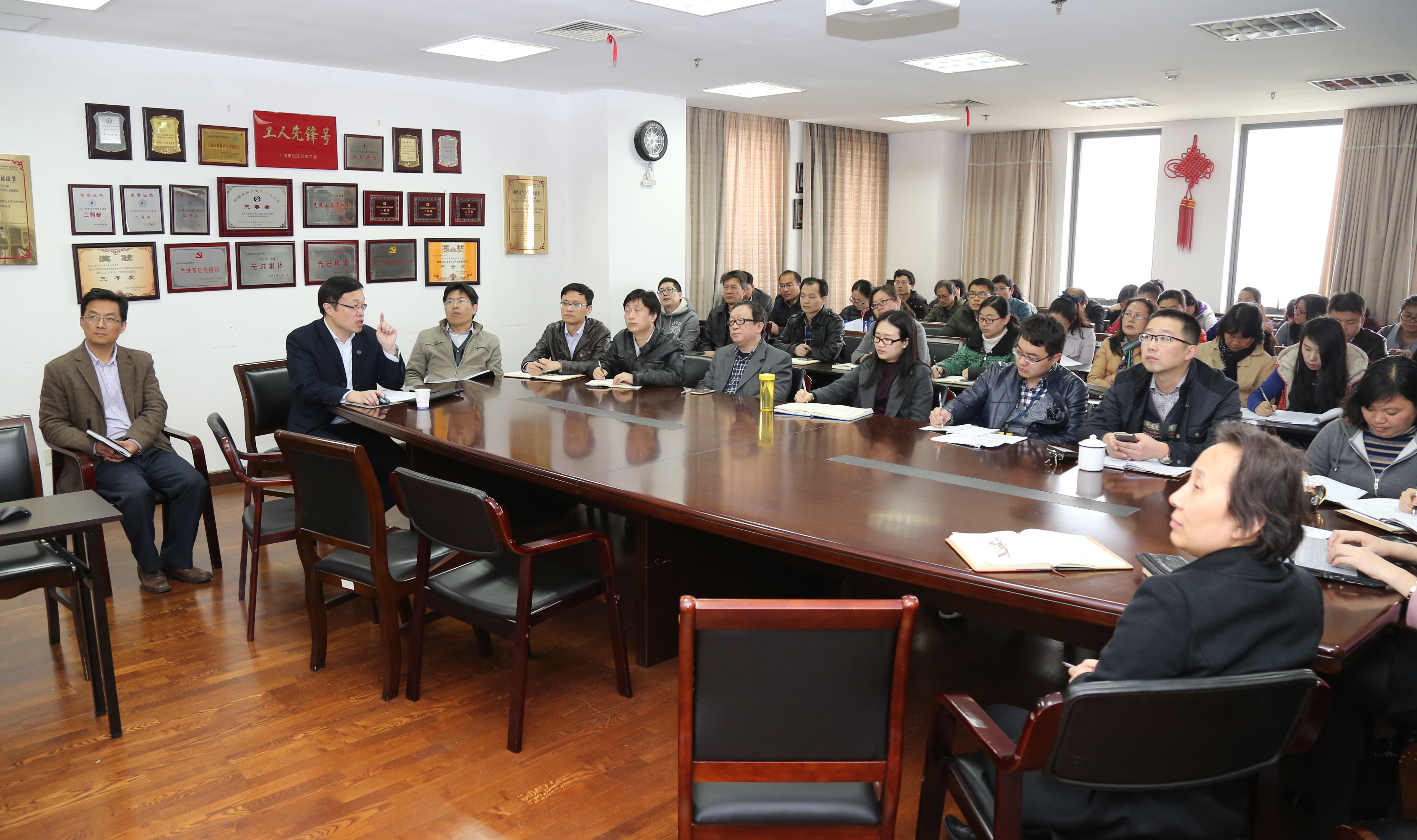 王陈老师结合实际工作,通过举例的方式,深入浅出地为汽车工程学院全体教师解读了习近平总书记在全国高校思想政治工作会议上的重要讲话精神。他指出,总书记强调了“要坚持把立德树人作为中心环节,把思想政治工作贯穿教育教学全过程,实现全程育人、全方位育人,努力开创我国高等教育事业发展新局面。”他从加强高校思想政治工作的重要性和必要性、全国高校思想政治工作会议的重要精神、学习贯彻会议精神的举措共三个方面解读及传达全国、上海高校思想政治工作会议精神。