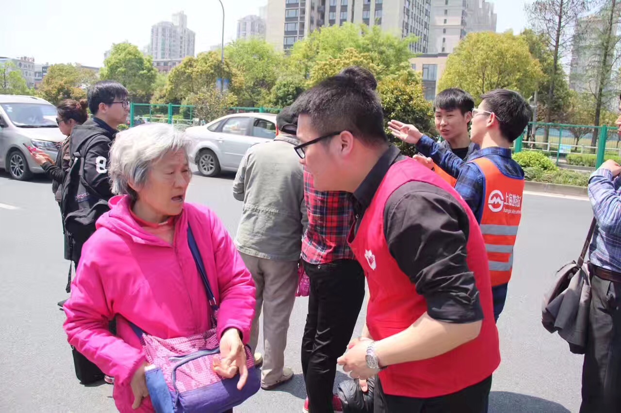 随后抵达的李哲辉同学,在疏散乘客的时候,遇到一位赶往医院做血透的老人。他深知老人的病情不能拖延,当即向老师报告,并亲自陪同老人的家属送老人赶往医院,途中他主动负责搬轮椅、推送老人的工作,一直将老人护送至中春路站。老人在无障碍电梯前握着李哲辉的手说:“今天真是太感谢了,你真是个好小伙!”