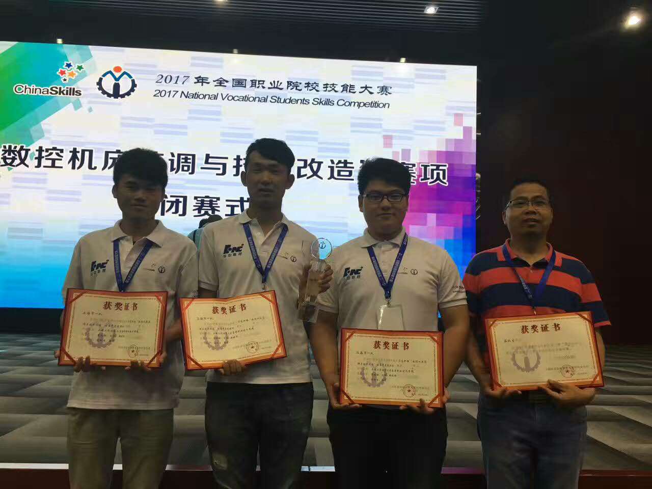近日,在天津举办的全国职业院校技能大赛上,高职学院、高级技校代表队凭借娴熟的技术和过硬的基本功,摘金夺银,斩获佳绩。由机电工程系茹秋生、孙方老师带教,戴仪钦、刘欣、郝晓明三名选手组成的“数控机床装调与技术改造”代表队从全国49支参赛代表队中脱颖而出,勇夺该项目高职组团体金奖,这也是我校连续三届蝉联该赛项金奖。此外,黄晓峰和宁宗奇老师带领王昇、李鑫、史周建三名同学获“工业机器人技术应用”团体银奖;俞刘杰、邓锋、孔盛杰三名同学组成的参赛代表队获全国职业院校技能大赛“模具数字化设计与制造工艺“赛项团体三等奖;茹秋生和孙方老师分别荣获大赛“优秀指导教师奖”。