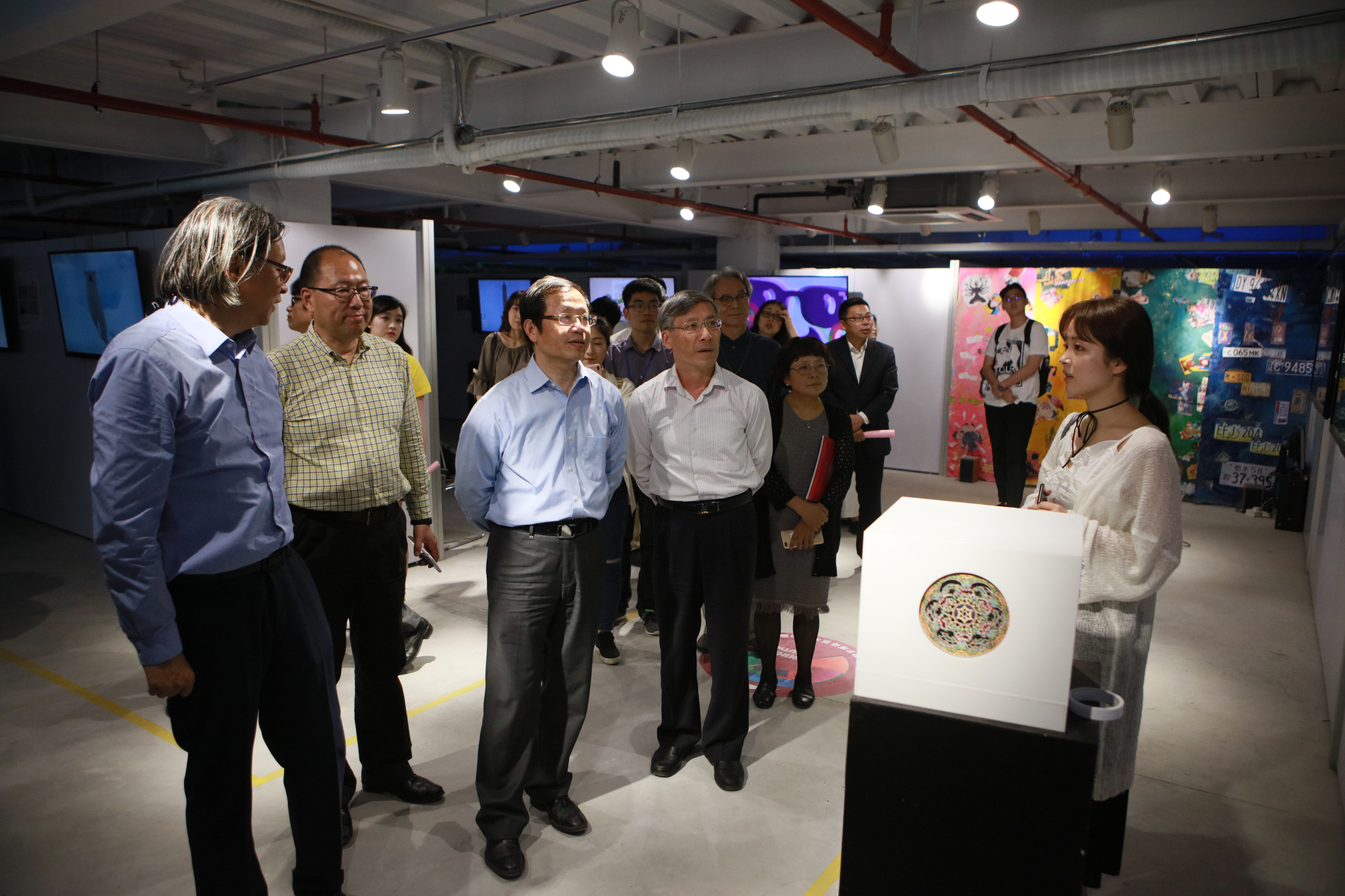 接下来现场嘉宾与获奖学生代表一同上台,启动了本届汇创青春上海大学生文化创意作品展示季(数字媒体艺术、动画类)活动。到场嘉宾与参赛者共同参观了本次展示。趣味交互的唐仕女俑video mapping光影秀,身临其境的萨尔瓦多•达利意象虚拟现实世界,结合体感交互与全息投影的“八音叠奏”,爵士乐引发的意识流影像,暗黑主义的定格动画等优秀作品为参观者带来了视觉冲击,为大家呈现了一场视听盛宴。